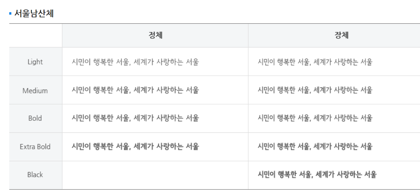 서울 남산체는 고딕체와 비슷하다고 이해하면 될 듯 하다.