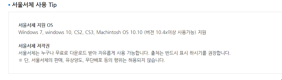 글꼴 설치는 위의 서울특별시 홈페이지에 접속하면 된다.