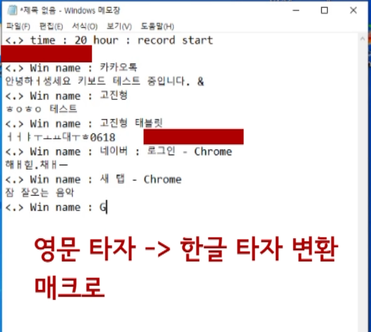 창이름이 먼저 뜨고 키보드 입력이 기록되어야 하는데
