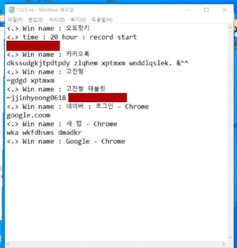 2. 아이디와 비번 뿐만이 아니라 대화내용도 다 기록된다.