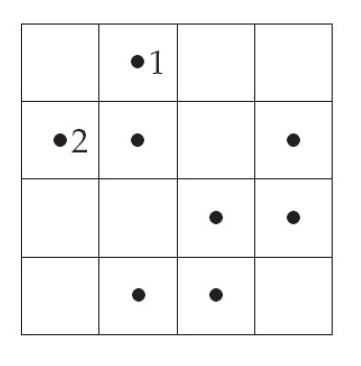 위에 픽셀(1행 1열)은 비어있고, 왼쪽 픽셀(2행 0열)은 존재하지 않는다.