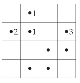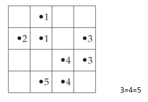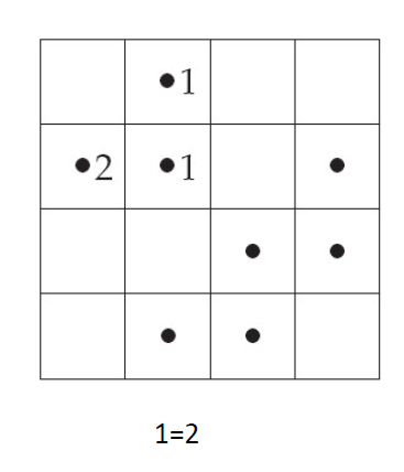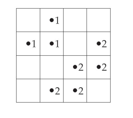 4 방향성을 따져서 조사했으므로 위의 데이터에서는 분리된 객체가 2개 존재한다는 것을 알 수 있다.