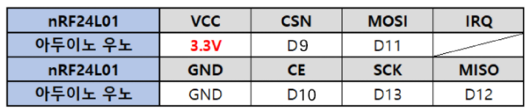 RF24 radio(10, 9); // SPI 버스에 nRF24L01 라디오를 설정하기 위해 CE, CSN를 선언.