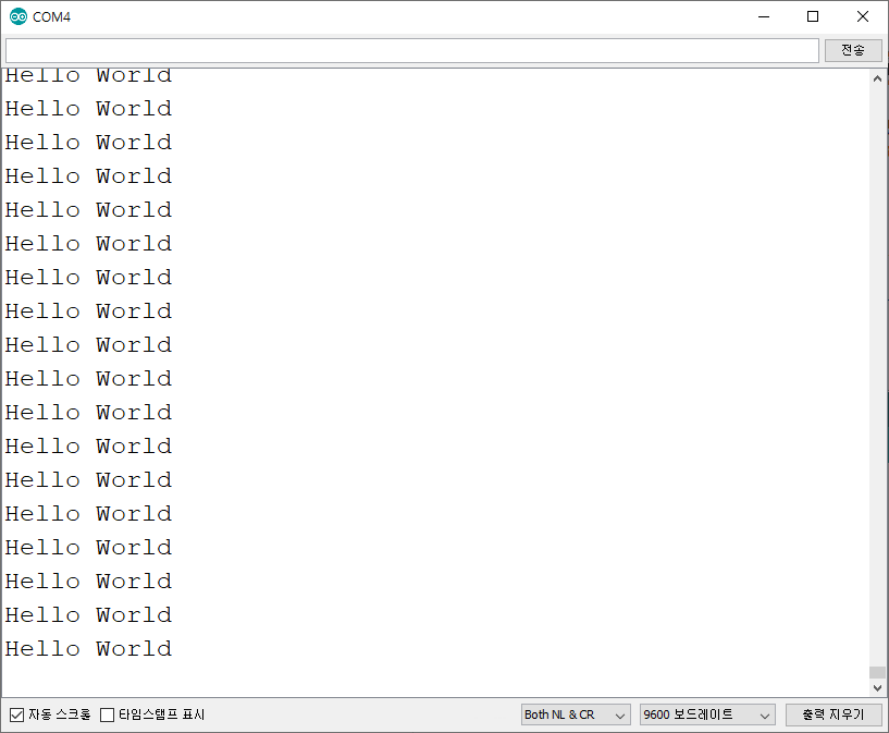 수신부 아두이노의 시리얼모니터를 보면 문자가 정상적으로 계속 수신되는 것을 확인할 수 있다.