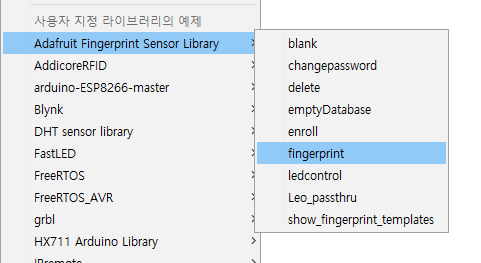이번에는 fingerprint 예제를 아두이노에 업로드 해주도록 한다.