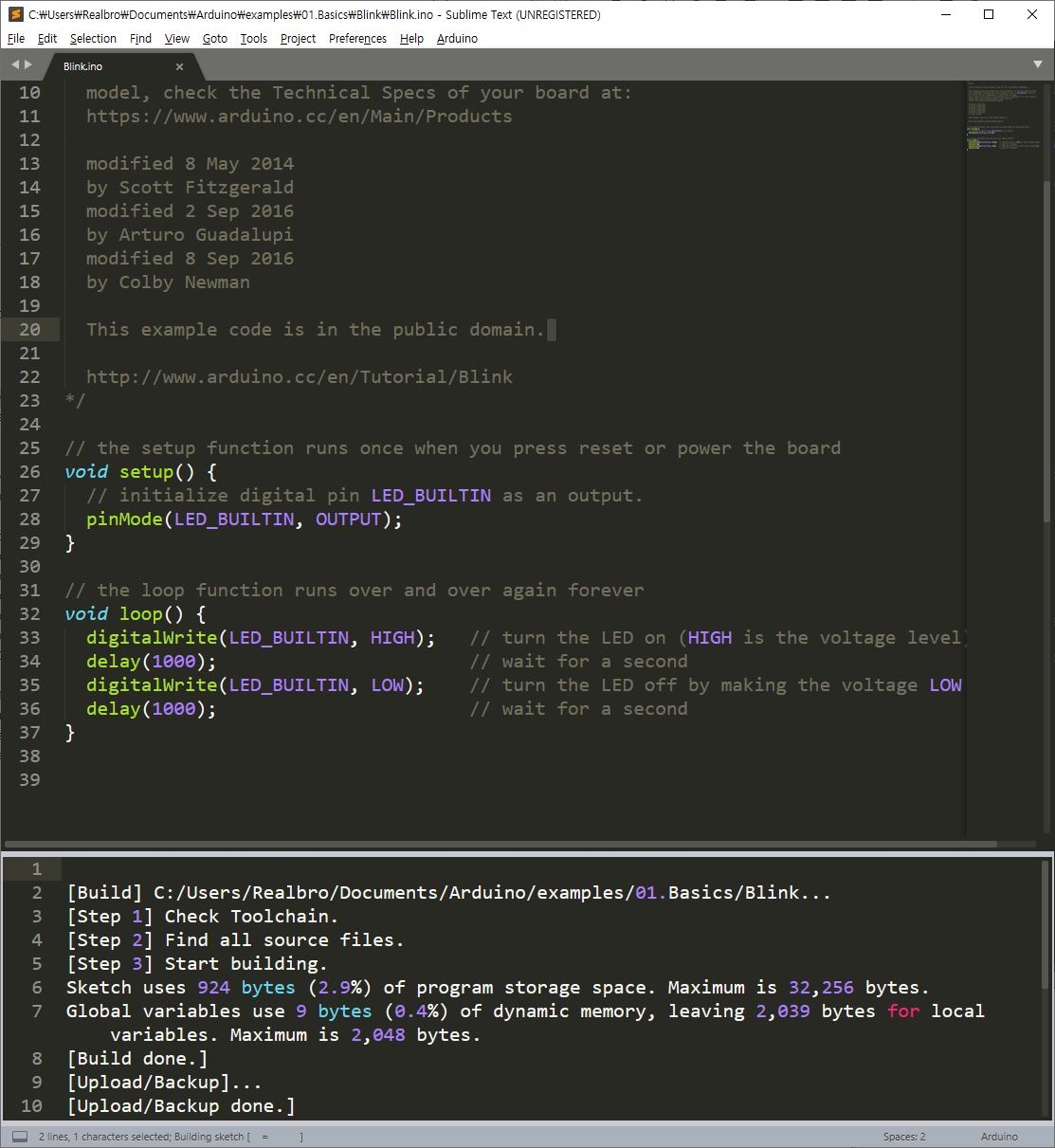 그러면 아두이노 사용하던 환경이 다 불러와지게 됩니다.