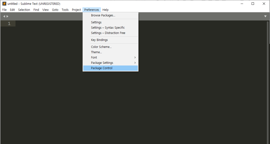 sublime text3 에서 preferences 탭에서 Package Control 을 찾아 클릭해줍시다.