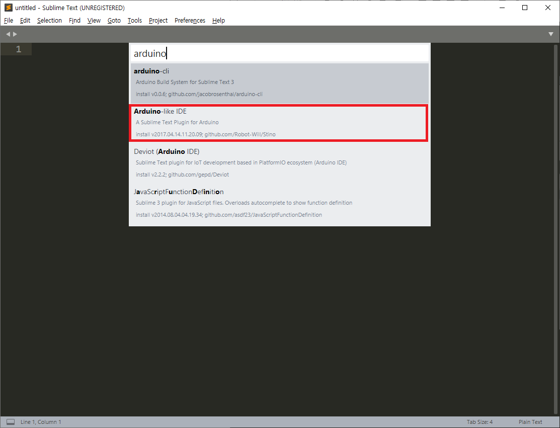 이제 그 Package Control을 이용하여 쉽게 아두이노 IDE 툴킷을 설치해주면 됩니다.