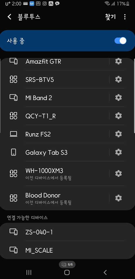 스마트폰에서 블루투스 장치목록으로 들어가서