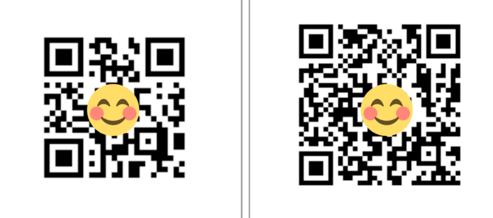 아무래도 쉽게 생성하다보니 기본값으로만 QR코드가 생성되어 버전, 오류 복원 레벨을 설정할 수 없는 문제가 있었습니다.