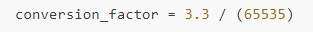 conversion_factor = 3.3 / (65535)