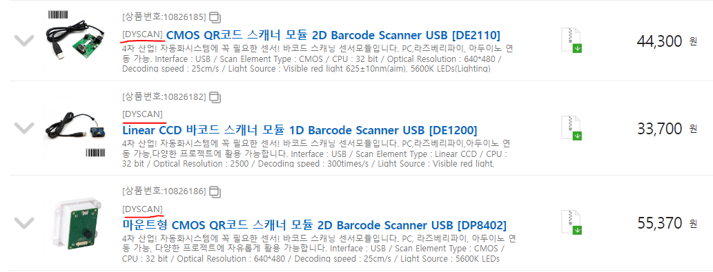 디바이스마트에서 보이는 바코드 리더기 검색을 해보면 특정 업체밖에 검색이 안된다.