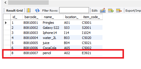 barcode_ 와 name_ , location_, item_code_ 는 해당 id_ 에 해당하는 값이 된다.