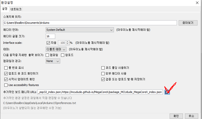 추가적인 보드 매니저 URL 을 추가해 줄 예정이다.