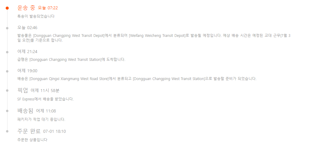 배송상태로 실시간으로 잘 업테이트가 되는 듯 하다.