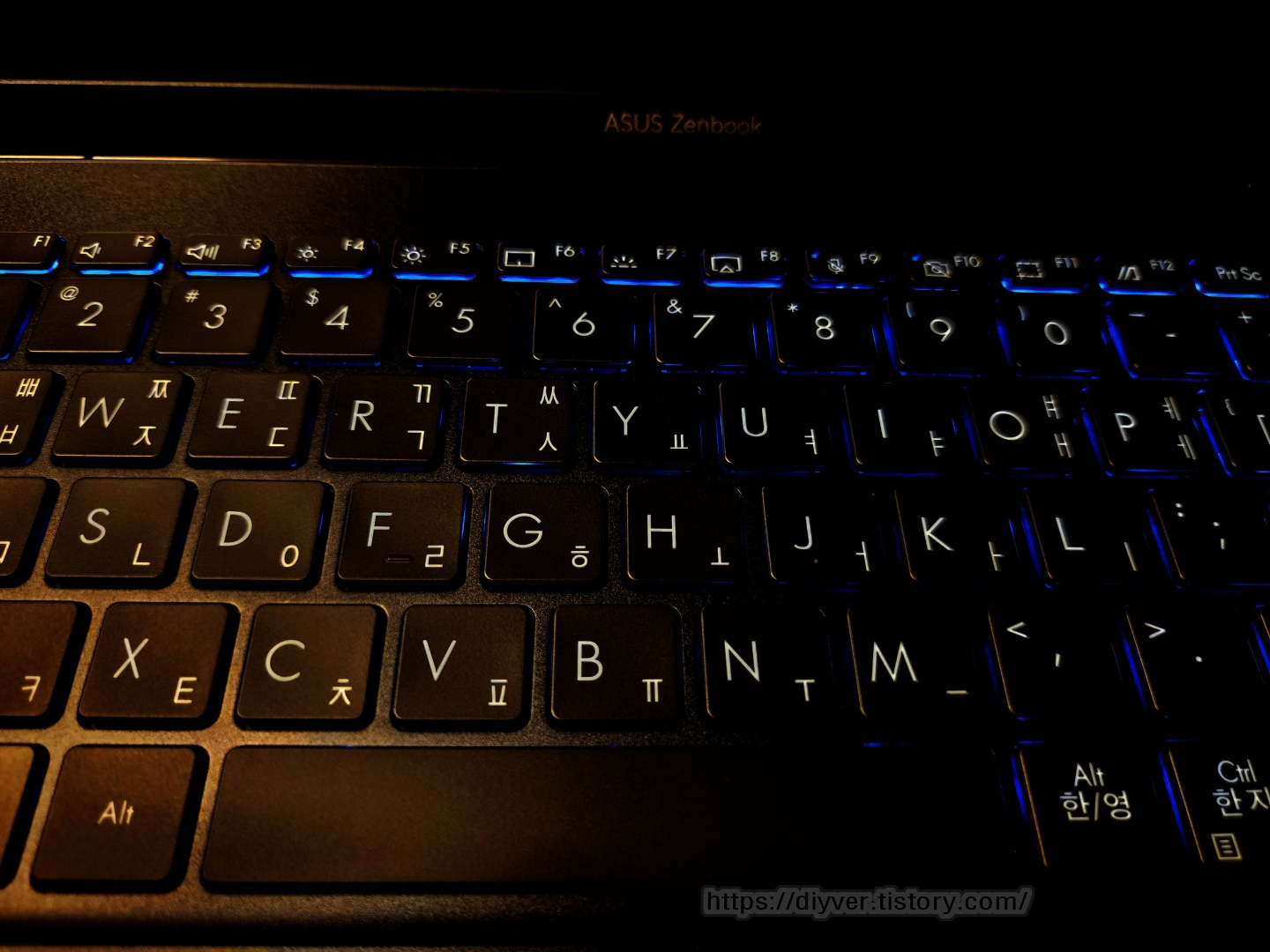 키보드 백라이트는 눈으로 봤을 때에는 하얀색 LED인데, 카메라로 찍으면 파랗게 나온다...