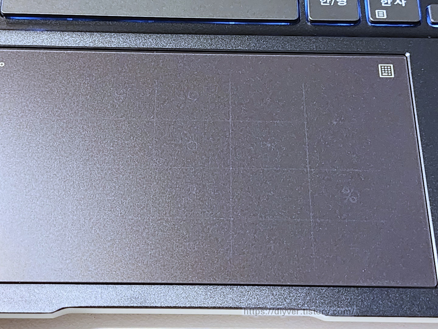 터치패드를 넘버패드로 사용하고 싶으면 우상단의 계산기 아이콘을 1초동안 터치하면 된다.