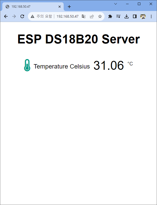결과를 미리보자면 위의 사진처럼 실시간 온도 값을 웹페이지를 통해서 확인할 수 있다.