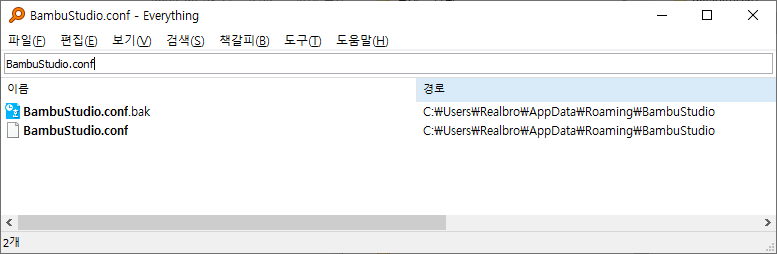 우선 BambuStudio.conf 파일을 찾는 방법은 여러가지 있겠는데