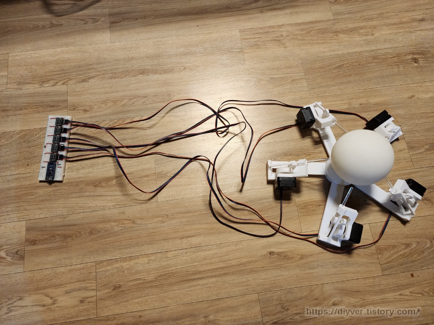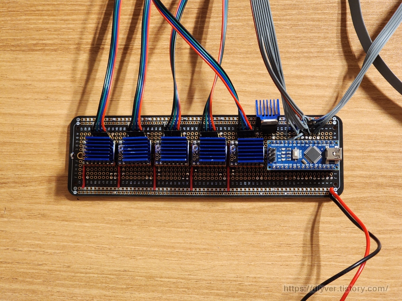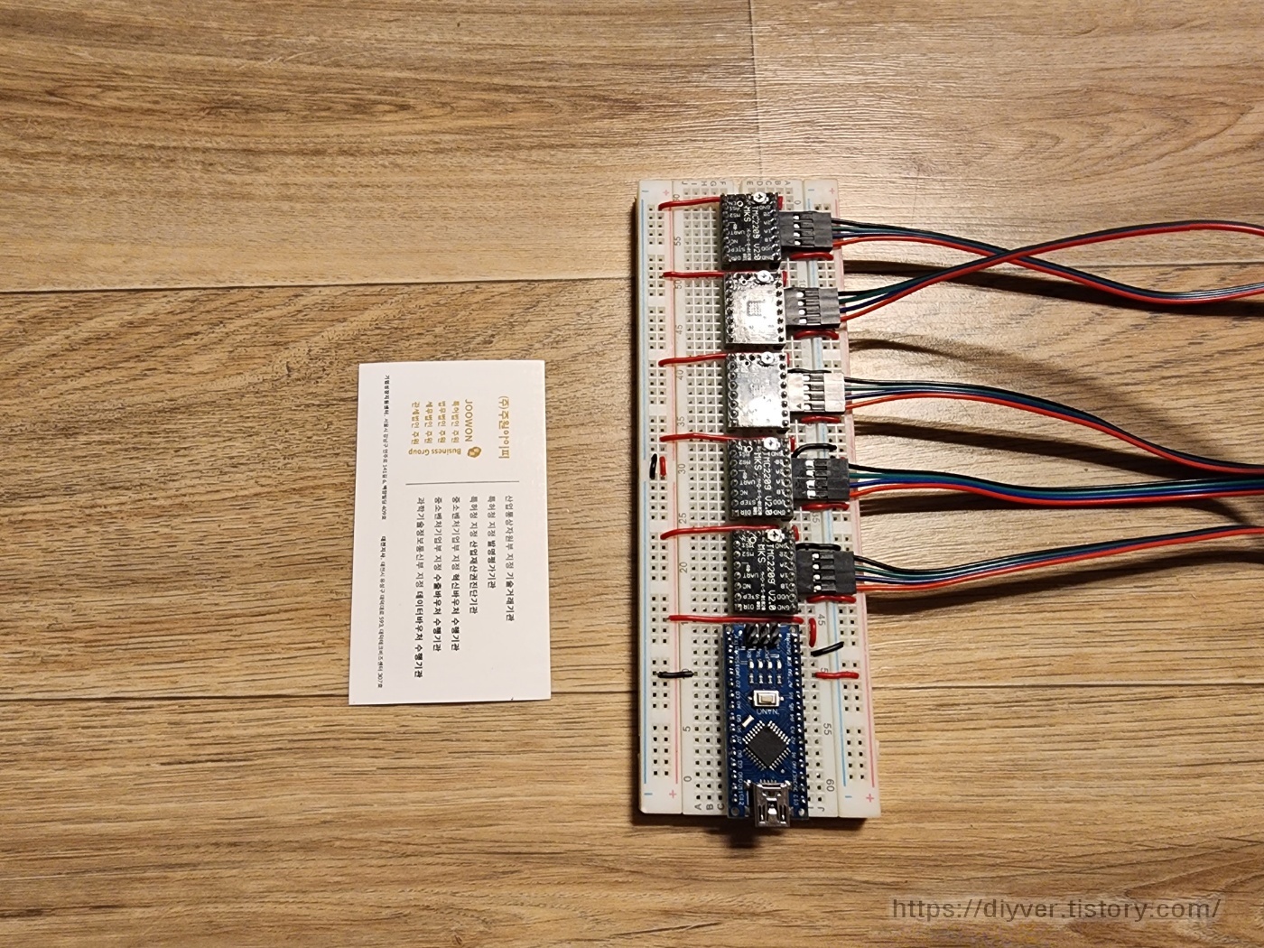 이렇게 테스트 보드(브레드보드)를 이용하여 구동을 테스트한다.