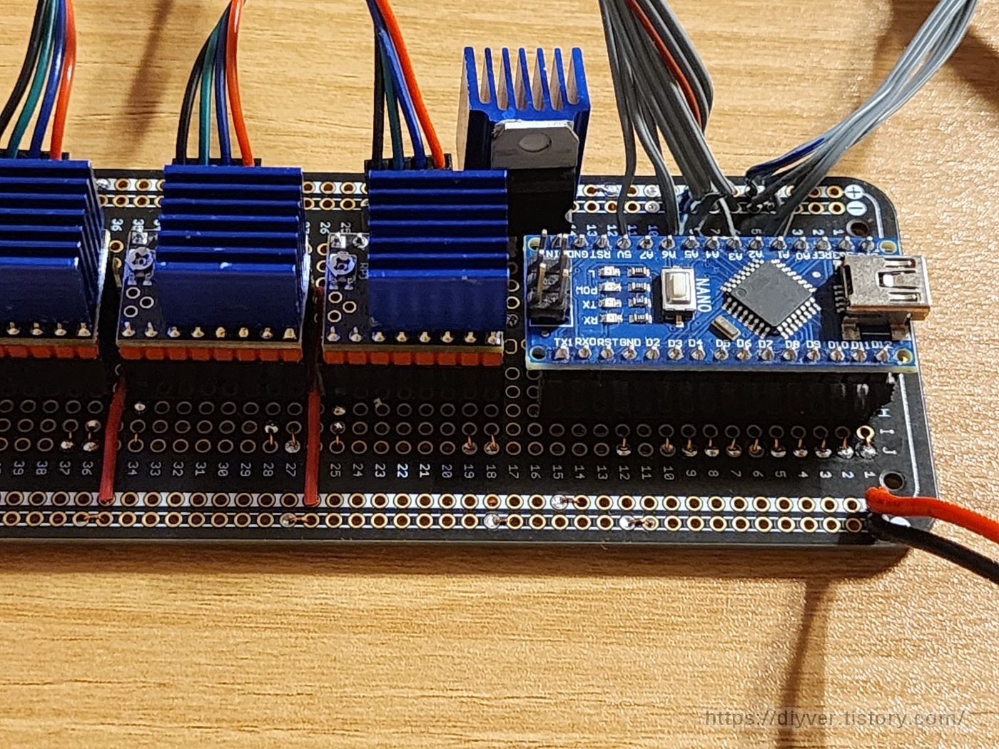 그렇기에 모터는 기존의 서보모터에서 스테핑모터와 무소음 모터드라이버를 사용해서 제어를 하기로 했다.