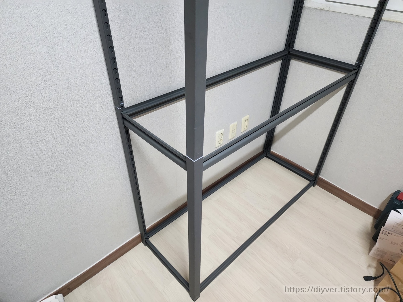 이렇게 하니 2단까지 랙선반을 올릴 수 있었다.