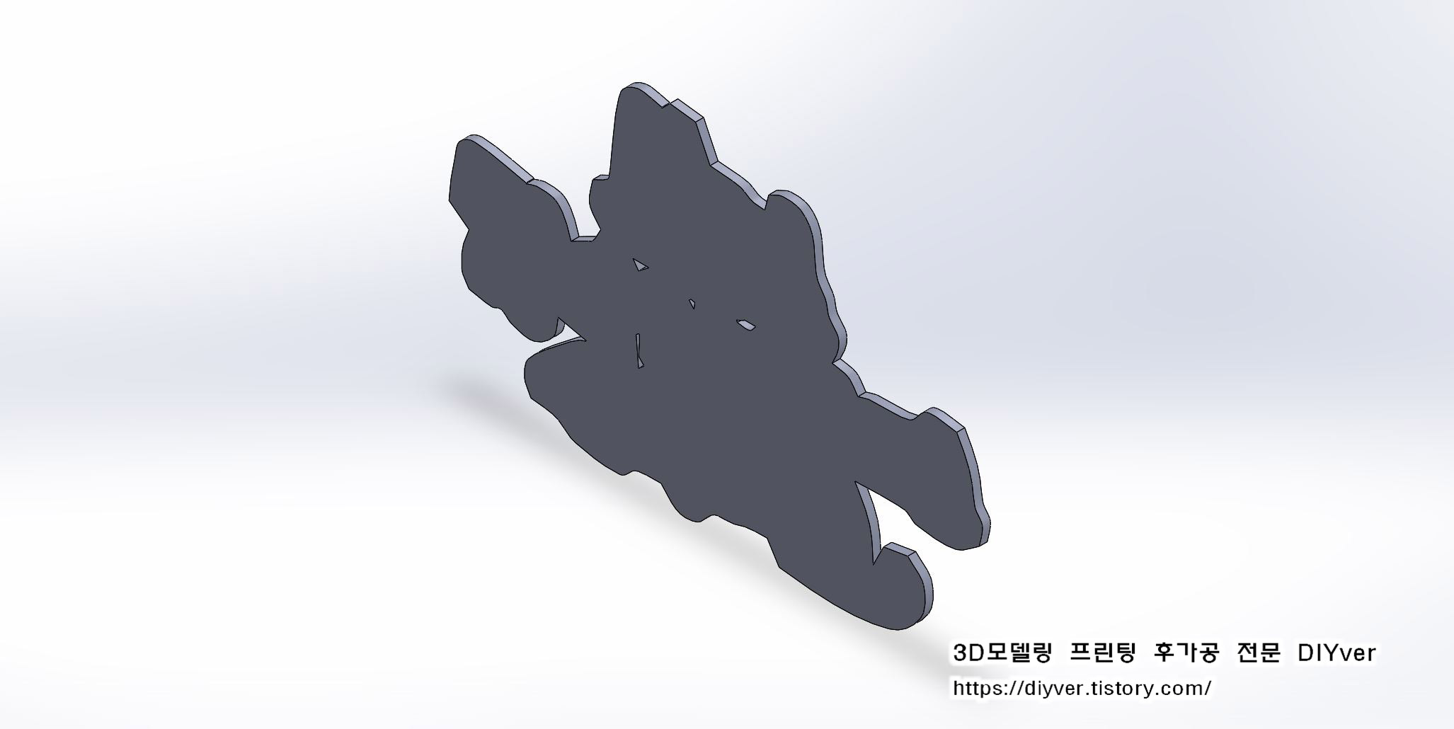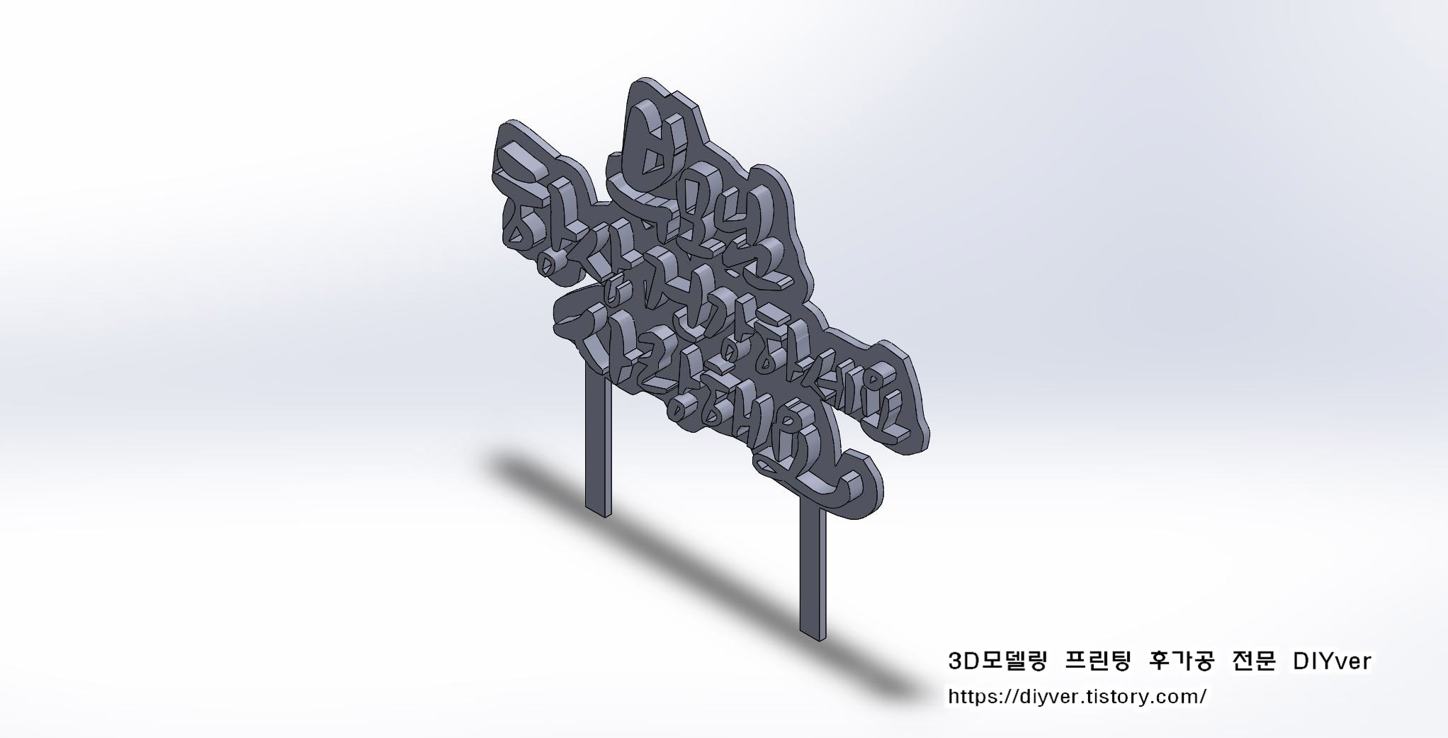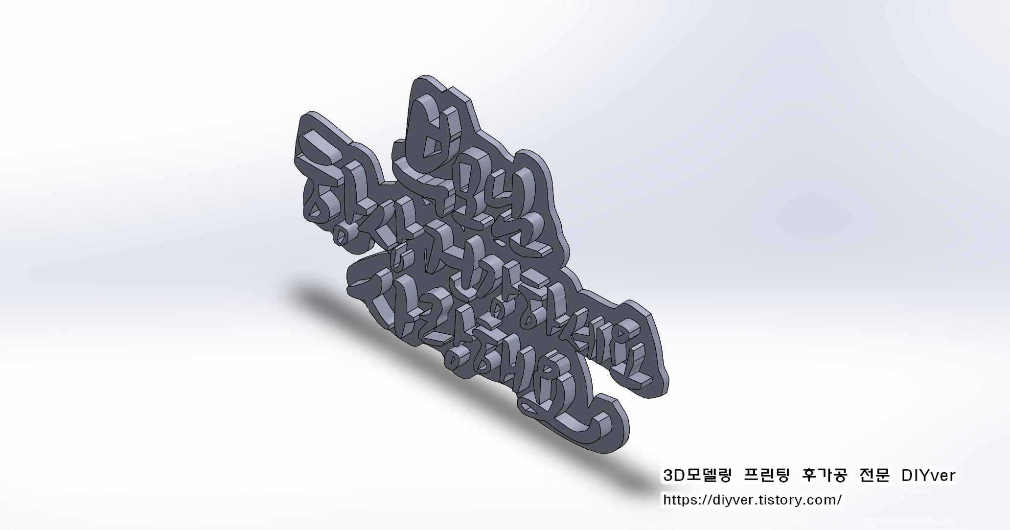 3D 모델링 프로그램을 통하여 원본 글자에서 더 확장되게 밑판을 생성해준다.