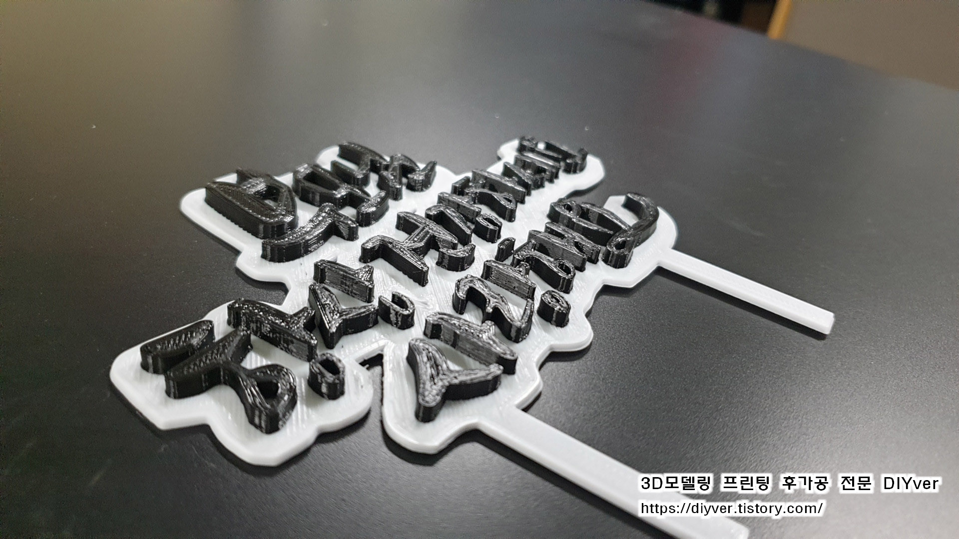 그리고 원본 글자의 테두리를 다시 따주고 돌출을 해주면 위와 같이 된다.