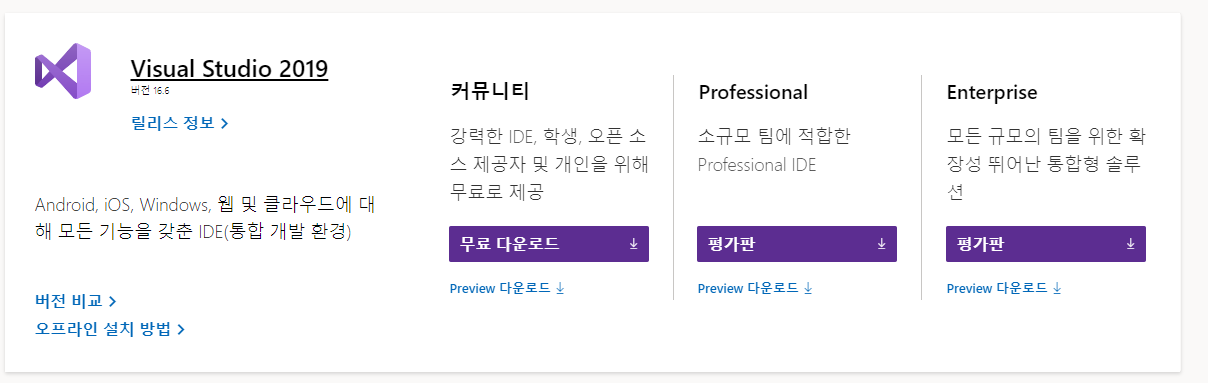 VisualStudio는 원래 유료프로그램이고, 지금도 유료프로그램이지만 무료로 사용할 수 있게 되었다.