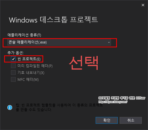 콘솔 애플리케이션으로 실행하는 것이 보통이기에 필자의 경우 위와같이 선택해주었다.