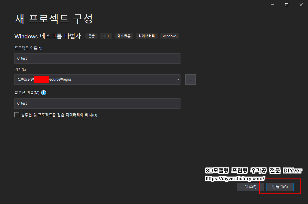 프로젝트 위치도 자신이 아는 위치에 정해놓는 것이 편리하고 찾기쉽다.