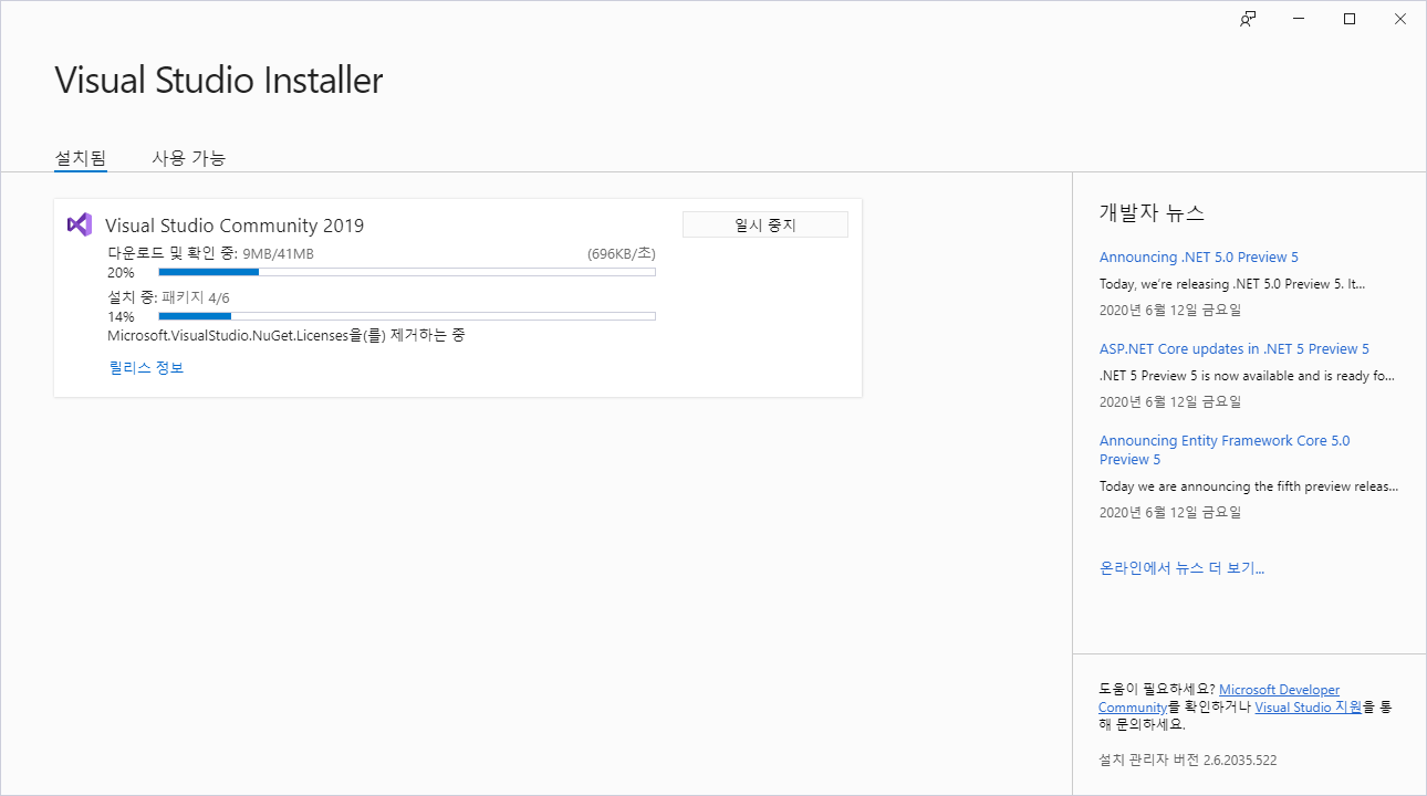 지금까지 Visual Studio 2019 버전 설치방법에 대해서 알아보았다.