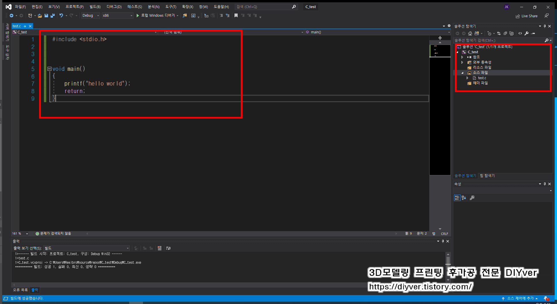 파일명은 *.c 로 해주면 C언어로 코딩을 할 수 있다.