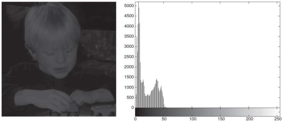 어두운 상황의 사진을 보면 히스토그램 정보가 어두운 값에 몰려있는데,