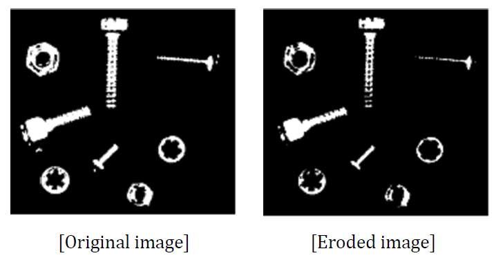 침식연산( Erode )을 적용하게 되면, 오른쪽 이미지처럼 된다.