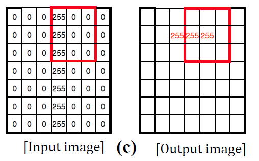 역시 최대값 255 가 있으므로 영역 중심 픽셀에 적용시킨다.