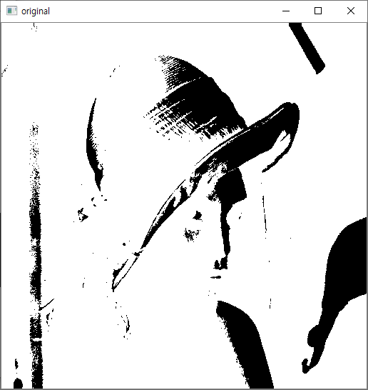 Lenna 이미지에서 임계값 180을 적용한 binary 이미지이다.