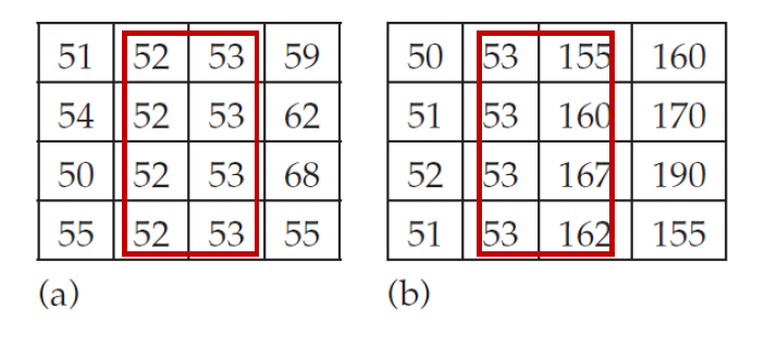 (b) 는 옆의 픽셀과 값이 확연히 차이나는 것을 알 수 있다.