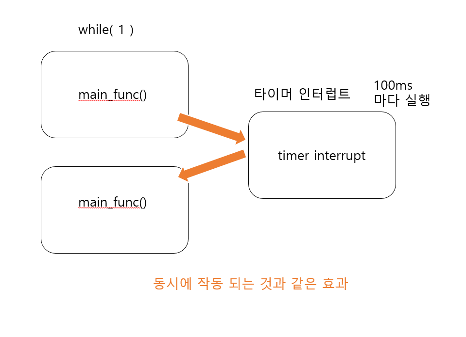 timer 인터럽트를 사용해서 메인 함수는 메인 함수대로 작동하고, 일정 시간마다 다른 코드를 실행시키게 하는 것이다.