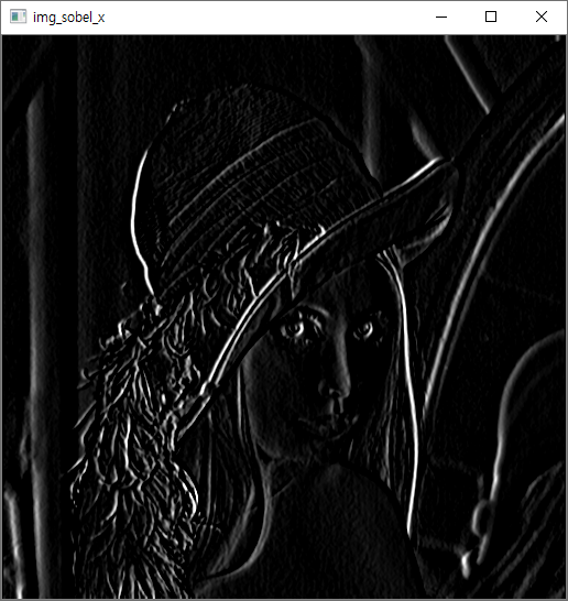 x방향으로 편미분하여 밝기 증가율이 높은 부분이 표시 되었다.