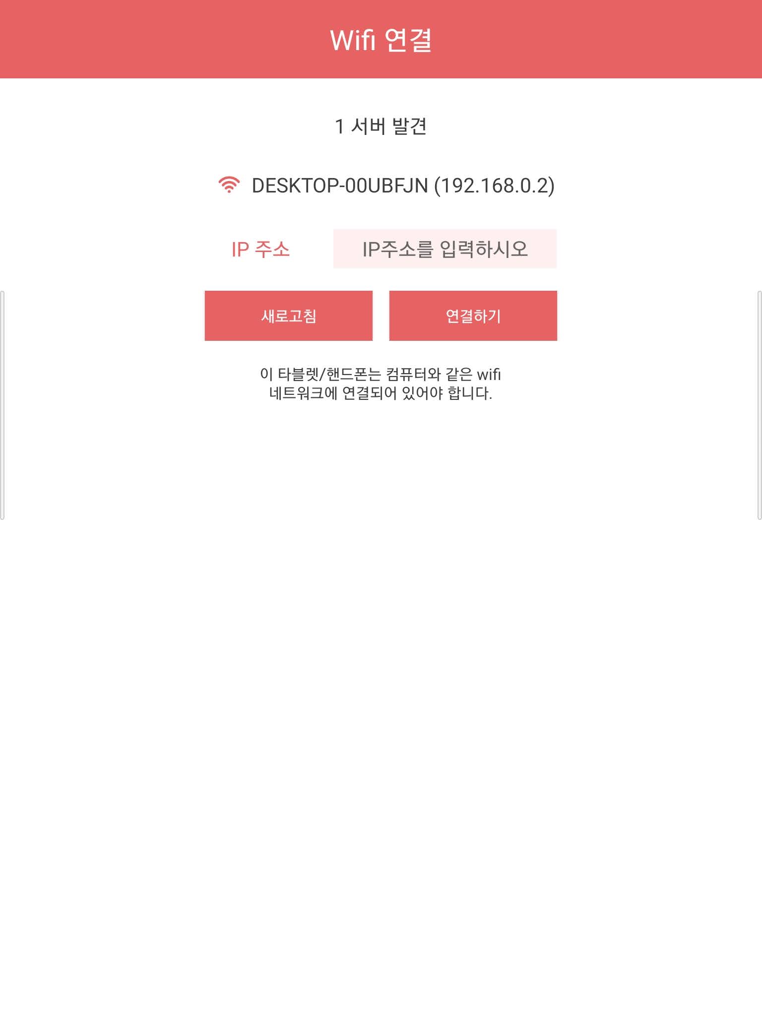 그리고 PC와 태블릿pc가 같은 공유기에 연결이 되어있어야 한다.(유선이든 무선이든)